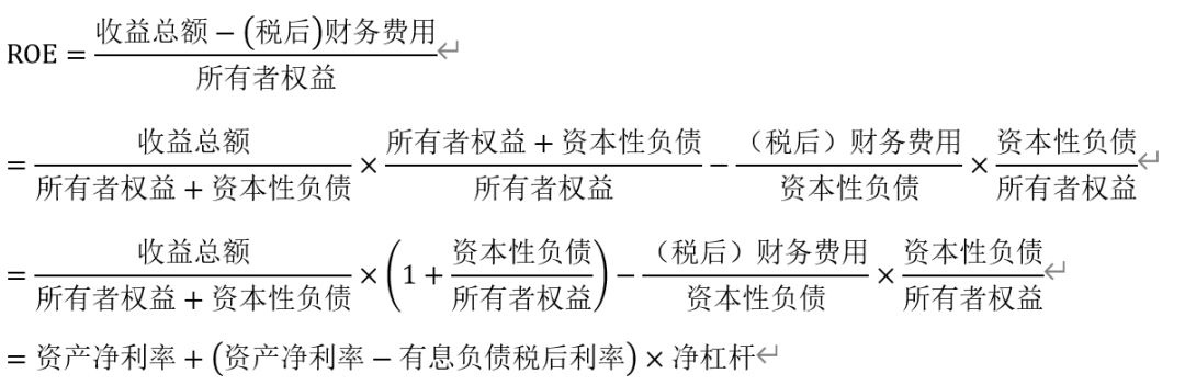 为了解决这一问题,我们可以借用重构后的利润表中"收益总额"一项,将收益总额与(税后)财务费用的差作为净利润的替代,由此我们可以得到以下推导: