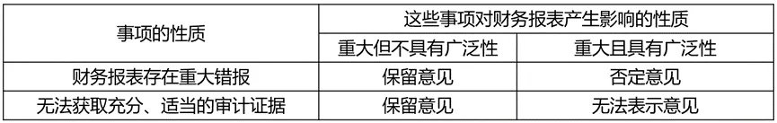 我们判断的流程就是先看错报是否具有广泛性(影响到多个科目或特定的重大科目),如果不具备广泛性就是保留意见,如果具备广泛性,就看是否能获得充分、适当的证据(不能一般是注册会计师被被审单位施加限制了),能获得就是否定意见(石锤),不能就是无法表示意见(没实锤,但肯定有问题)。